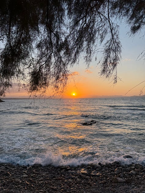 Even though we have four weeks left here, and a holiday to the Greek islands to look forward to next, I can already tell leaving is going to feel bittersweet. Which is why I wanted to add a blog entry to capture this feeling so that one day, when life feels more hurried, I can look back on this time and remember how it felt to watch the sunset with nowhere to be. To fall asleep in the gently rocking hammock and dappled afternoon shade. To lie back in the shallow turquoise waters and float for a while.